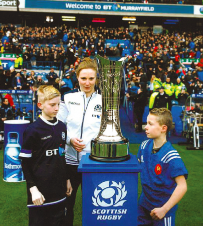 It was first presented to the winners of the Six Nations match between Scotland and France on February 11, 2018 and was carried onto the pitch at Murrayfield, Edinburgh by Lachlan Ross and Romain Cabanis, 11-year-old descendants of Milroy and Burgun.