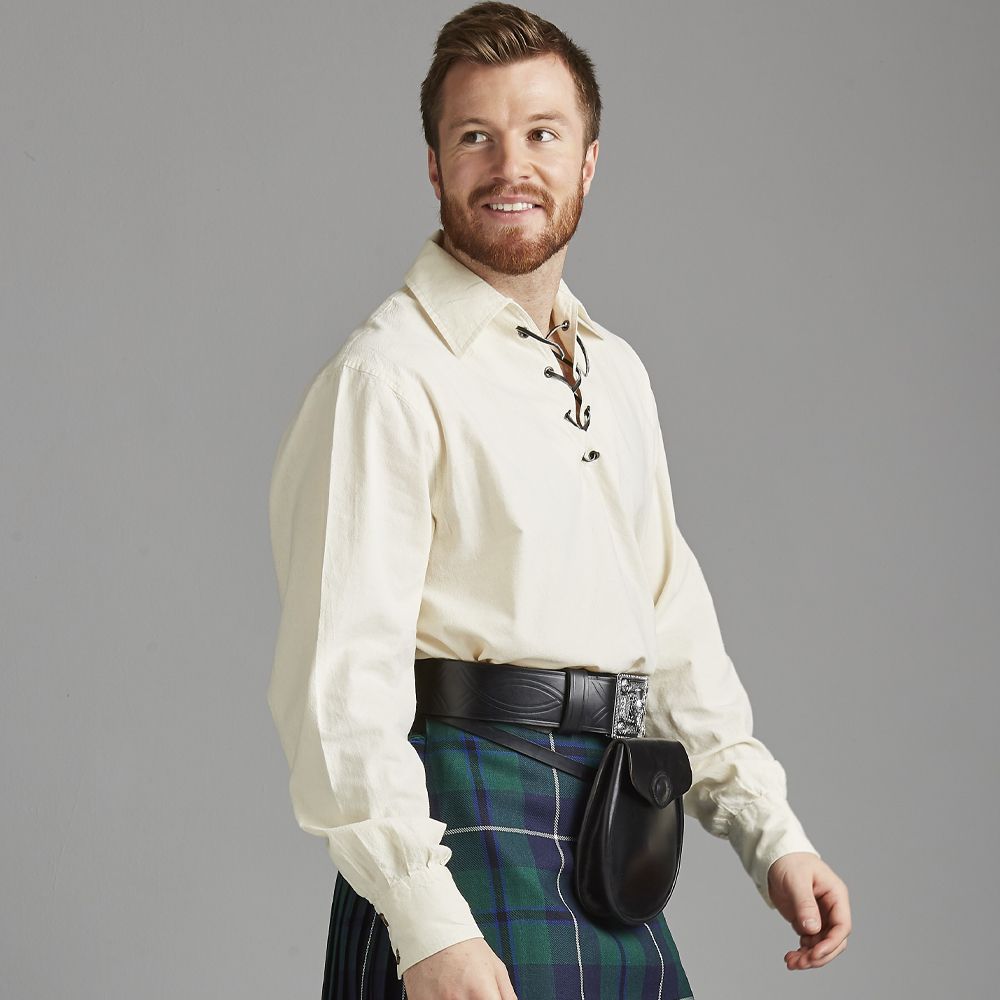 The Jacobite shirt is made from 100% Ecru cotton and is designed to be loose-fitting and very comfortable. It fastens with a lace threaded through the eyelets, creating a more casual look to your outfit.