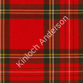 Stewart Royal Modern Polyviscose Tartan is mainly red in colour. The Modern colourway displays dark bold tones.