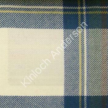 Stewart Muted Medium Weight Blue Dress Tartan is suitable for Mens Kilts, Trousers and Ladies Skirts. This pure New Wool Tartan is mainly white in colour. The Muted colourway displays light soft tones.