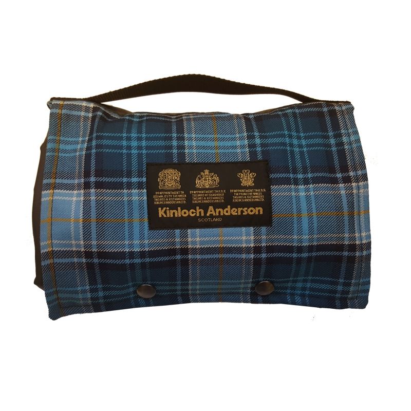 This very useful Picnic Rug in Kinloch Anderson Blue Loch Tartan has a brown wax waterproof backing.